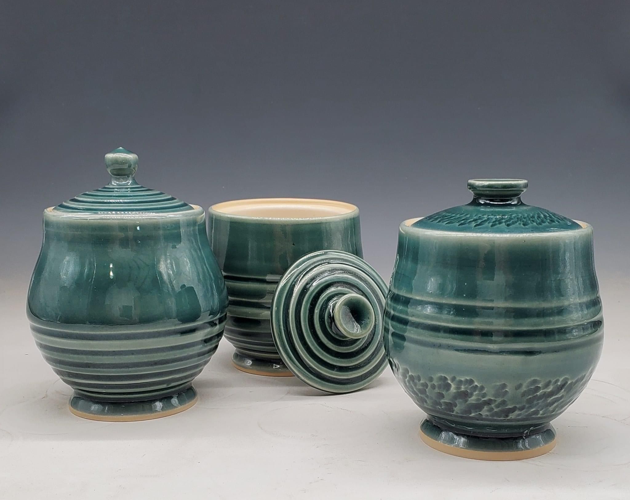 Rainforest ist ein glänzendes und tiefes Waldgrün. Die Glasur ist intensiver in Vertiefungen und heller an Kanten und betont damit eine texurierte Oberfläche. Sehr schöne Effekte, wenn darüber mit Celadon Snow gelayert wird.