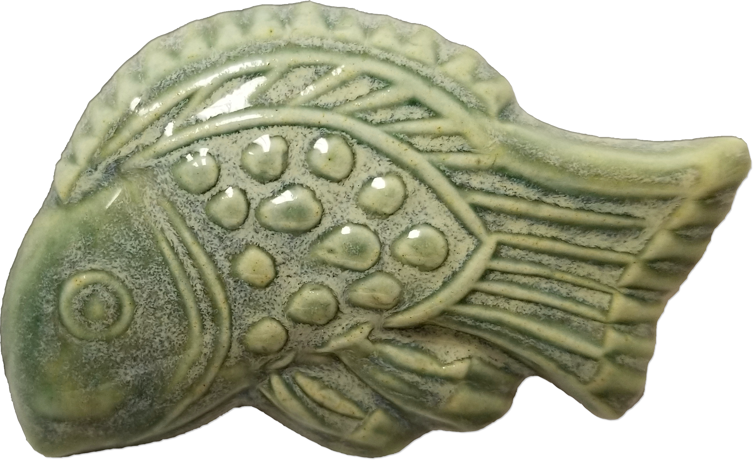 FLOATING CELADON ist eine zartgrüne Steinzeugglasur, die auf texturierten Oberflächen schöne Effekte bildet.
